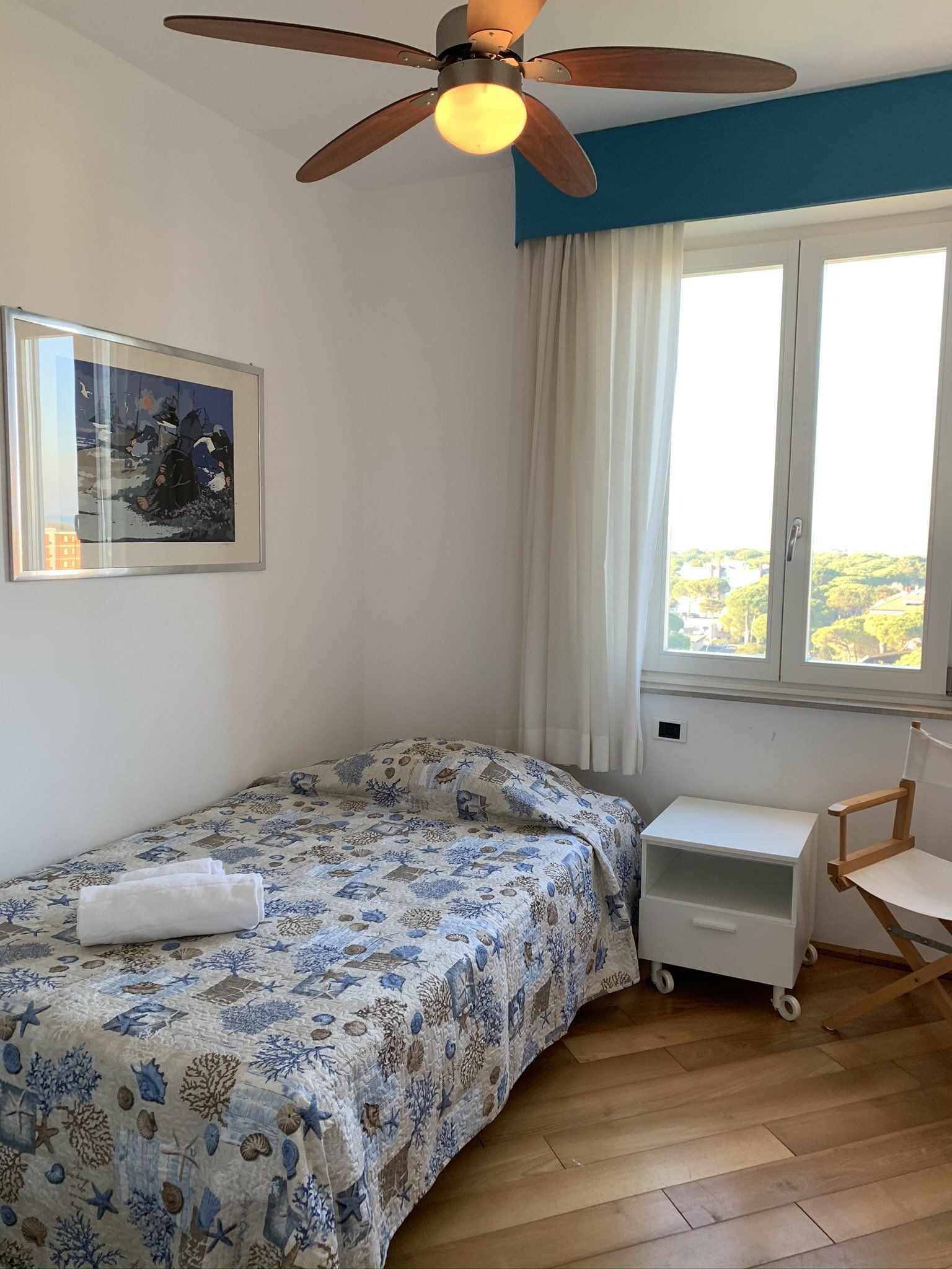 Fantastisches Penthouse mit wundervollem Panorama Ausblick auf das Lignano Pineta nur 3 Minuten zu Fuß zum Strand, Shopping, Cafes und Restaurants. Aus den Terrassen von diesem Penthouse genießt man die beste Aussicht auf die grüne Lignano und das Meer. Die Wohnung hat ein Schlafzimmer mit Doppelbett mit eigenem Bad mit Dusche, zwei weitere Zimmer für jeweils zwei Personen,ein separates Schlafzimmer mit grösseren Einzelbett mit eigenem Badezimmer, eine komplett ausgestattete grosse Küche, ein Badezimmer mit Dusche und WC, ein grosses Wohnzimmer mit einen Fernseher mit Satellit. Die Wohnung ist mit Zentralheizung beheizt. Aussendusche. Einen Privatparkplatz ist auch vorhanden.
